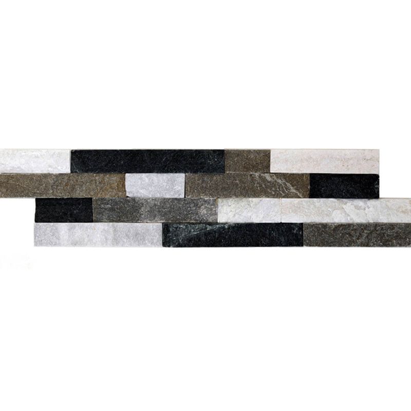 Aysen Grau Blend de Misiones Deco (SLQ4106) es un revestimiento de piedra natural Geo Quarzo que destaca como una solución de alta gama para proyectos modernos con un fromato de 15x55 cm. Su diseño combina piezas en tonos negros, grises y blancos con un acabado de roca rústica, logrando una estética que aporta lujo y carácter tanto a interiores como a fachadas exteriores.