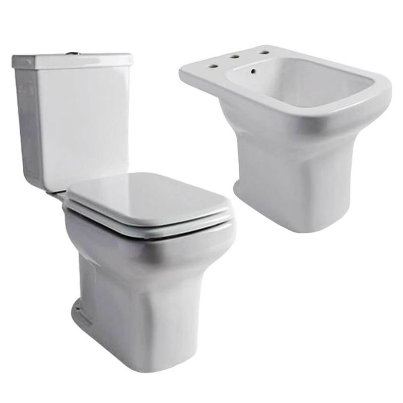 Incluye: • Inodoro largo Limay código ICLQ-B de 3/4,5 Litros. Porcelana sanitaria. • Depósito doble descarga Limay código DCW4A de 3/4,5 Litros. Porcelana sanitaria. • Bidet de 3 agujeros Limay código BCM3-B. Porcelana sanitaria. • Asiento Para Inodoro Limay TYXM Blanco Cierre Manual con herraje de nylon.