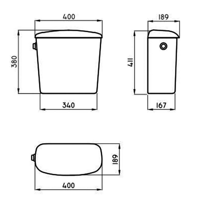 Depósito Descarga Simple Espacio código DTE6F de 6/3 litros. Porcelana Sanitaria. Este depósito se instala con inodoro alto espacio código IETMJ, también disponible en nuestra tienda. No incluye Inodoro, descarga, tapa y asiento. Garantía de 10 años del fabricante por defectos de fabricación. Excluye daños ocasionados por el uso inadecuado, instalaciones deficientes o el uso de limpiadores abrasivos.