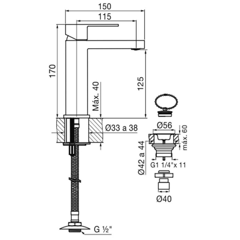 grifería monocomando 85N Dominic New de FV no es solo una grifería; es una pieza central de diseño que redefine la funcionalidad y el estilo en el baño. Creado para el público que valora la estética minimalista y la ingeniería de precisión, este monocomando combina líneas depuradas con un rendimiento impecable.