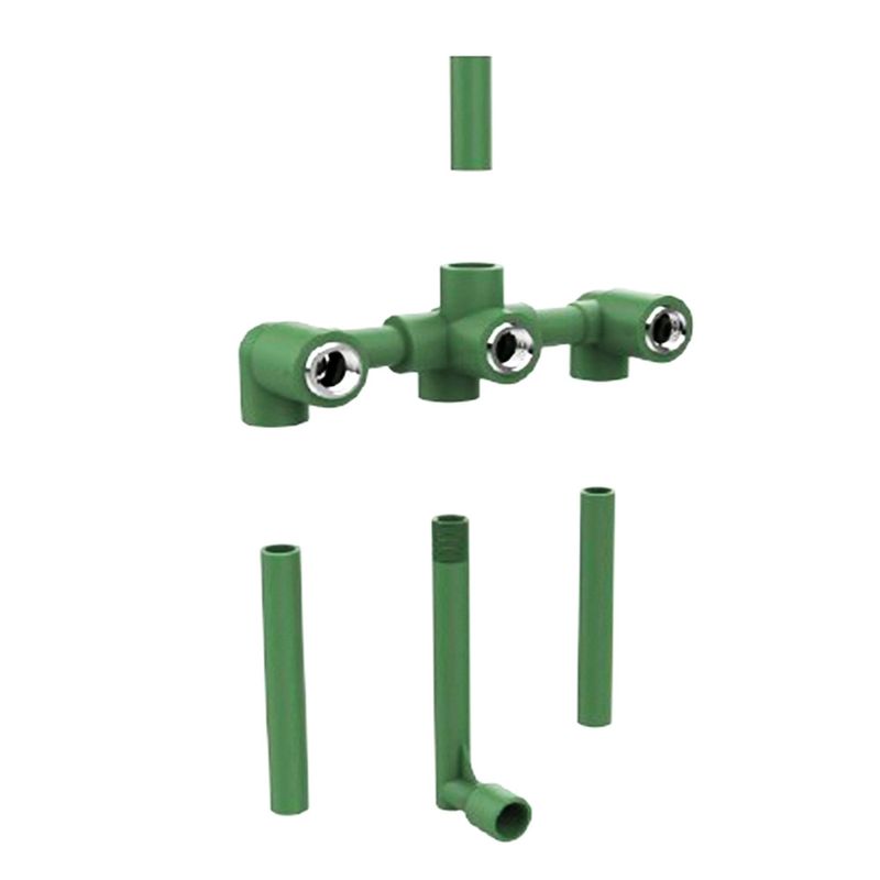 Grifería para ducha de diseño moderno y agradable. Color cromo y acabado brillante. Doble comando cilíndrico y cierre tradicional. Fabricado con polipropileno copolímero Random tipo III, material con el cual se fabrican los caños para fusión. Evita la formación de sarro e incrustaciones. Apta para Instalación con termofusión en ingreso de agua caliente y fría.