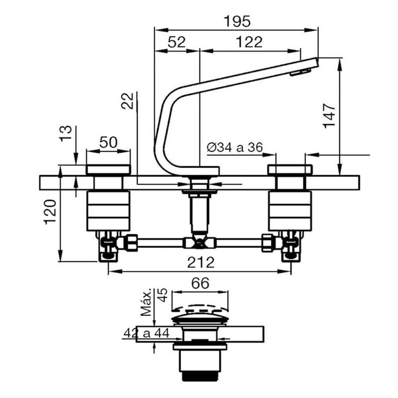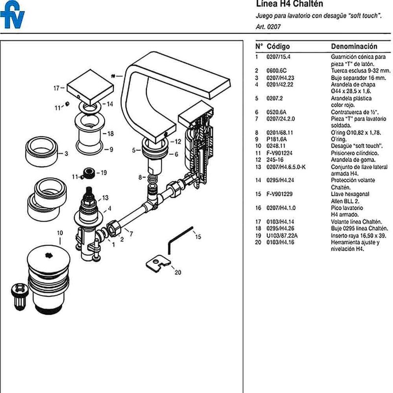 juego para lavatorio H4 Chaltén de FV. Este set de dos piezas, que incluye el pico de salida y un comando individual, ofrece una combinación perfecta de
