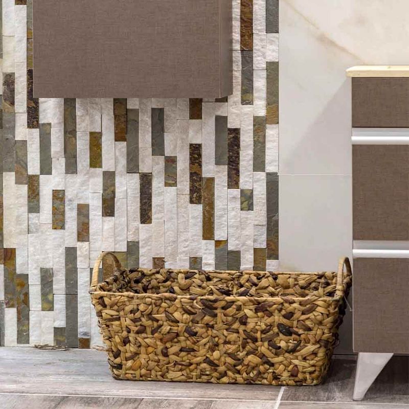 El Izmir Siberia Blend de Misiones Deco (SLQ4517) es un revestimiento de piedra natural Geo Quarzo diseñado en paneles de 10x40 cm con bordes rectificados, ideal para crear superficies con texturas orgánicas y un acabado sofisticado. Este producto, que destaca por su tonalidad blanca y grisácea balanceada, es apto tanto para interiores como exteriores, incluyendo paredes de salas, baños, cocinas, fachadas e incluso zonas de piletas.