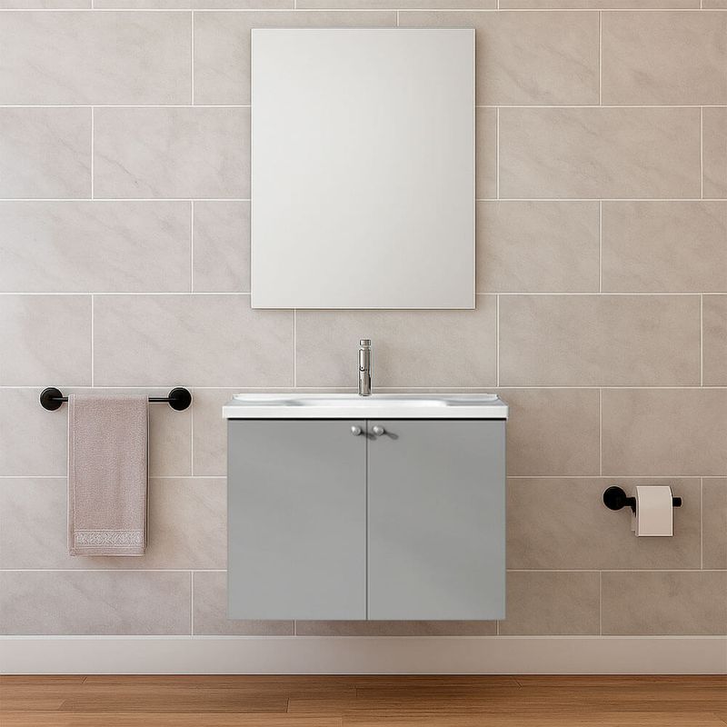 Incluye: • Vanitory DGC DG302594-GO de colgar Fabricado en MDF color Blanco posee 2 puertas con tiradores plásticos de color aluminio de 61x48x45cm. • Bacha de Loza blanca de 1 agujero DG312596-W de 61x48x19 cm. • Espejo rectangular de Aluminio DG32259-GL. De 55 cm de ancho por 70 cm de alto, Espesor 3,5 mm. No Incluye Griferia