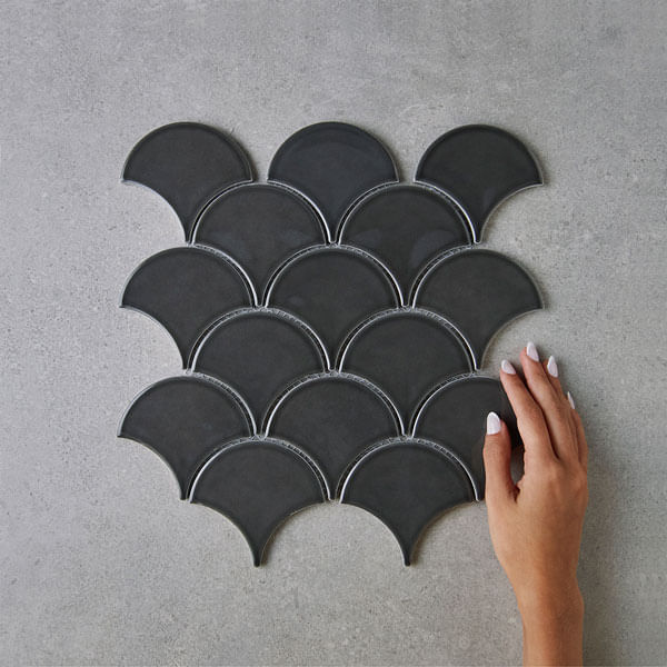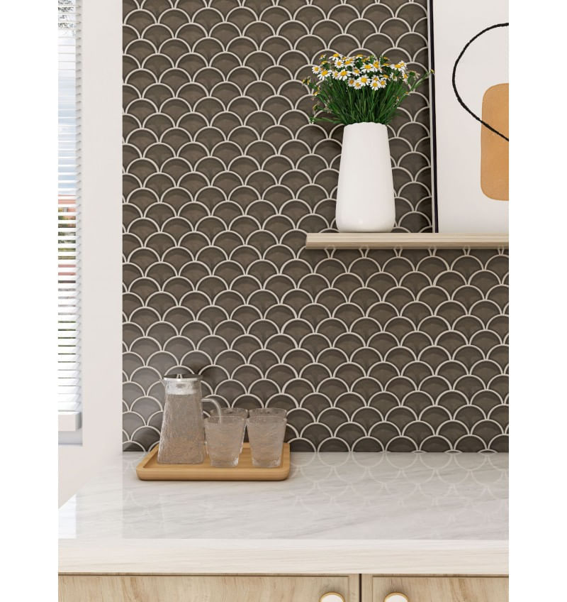 Montado sobre malla para una instalación continua y precisa, el Fishscale Fan Shape Dark Grey combina durabilidad superior con estética de alto nivel, pensado para quienes aprecian el diseño con carácter y la excelencia en cada detalle. Este revestimiento no solo viste las paredes, sino que eleva la experiencia sensorial de tus interiores.