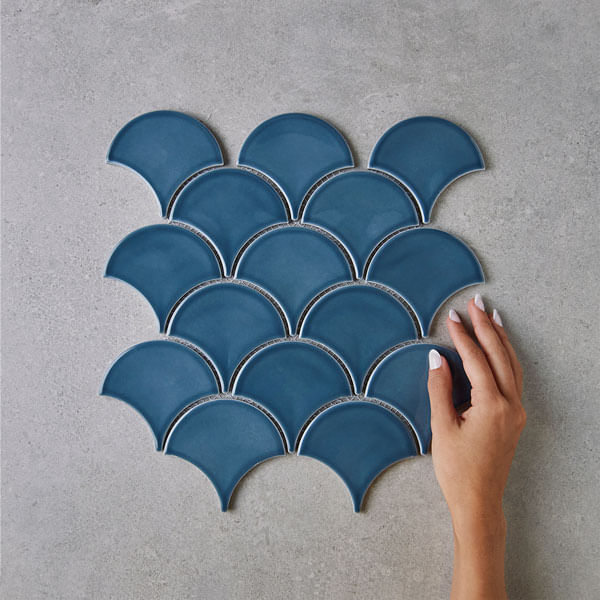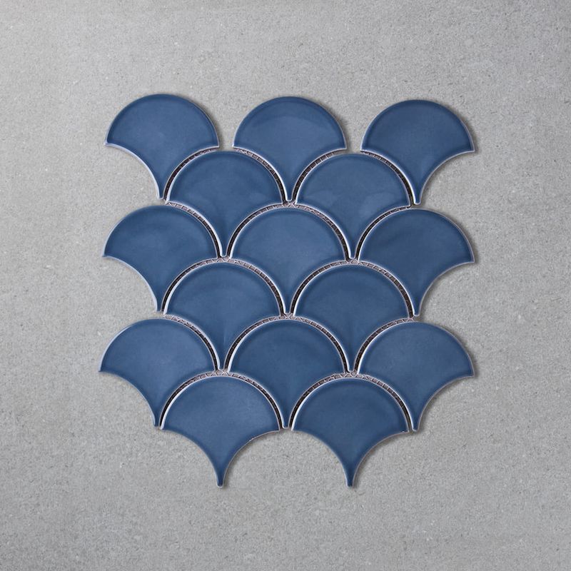 Confeccionado en porcellanato de alta calidad y presentado en mallas que facilitan una instalación continua y precisa, el Fishscale Fan Shape Blue combina durabilidad y belleza, pensado para proyectos residenciales o comerciales de alto nivel. Su acabado brillante aumenta la luminosidad y profundidad visual, convirtiendo las paredes en un elemento de diseño memorable.