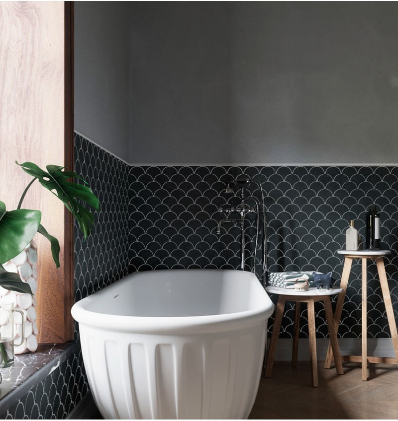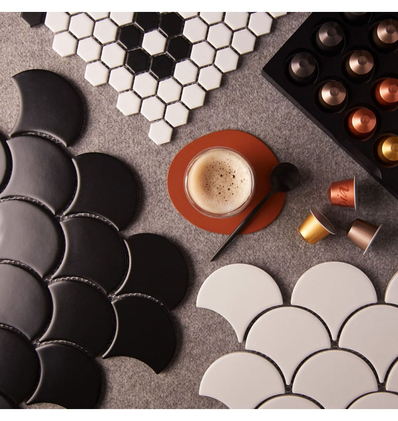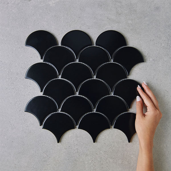 Redefiní tus espacios con la elegancia profunda y el carácter distintivo del Fishscale Matte Black. Este mosaico de porcellanato en forma de escama —con su acabado negro mate sofisticado— aporta una presencia escultural y sobria que eleva cualquier entorno con una estética contemporánea y de alta gama.