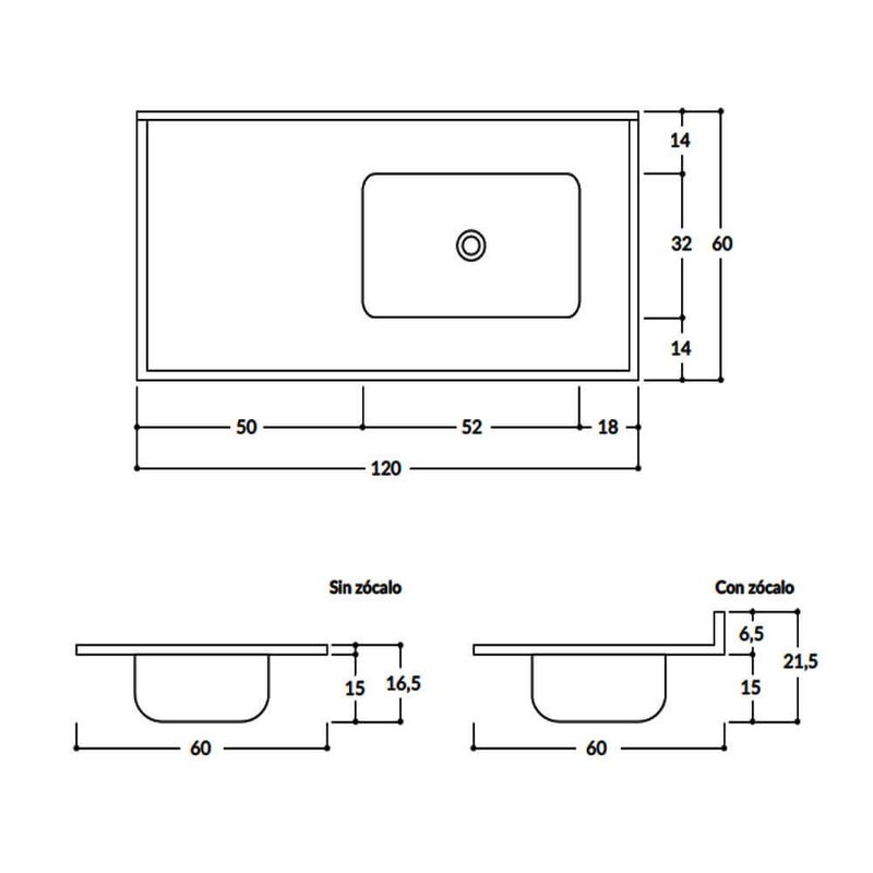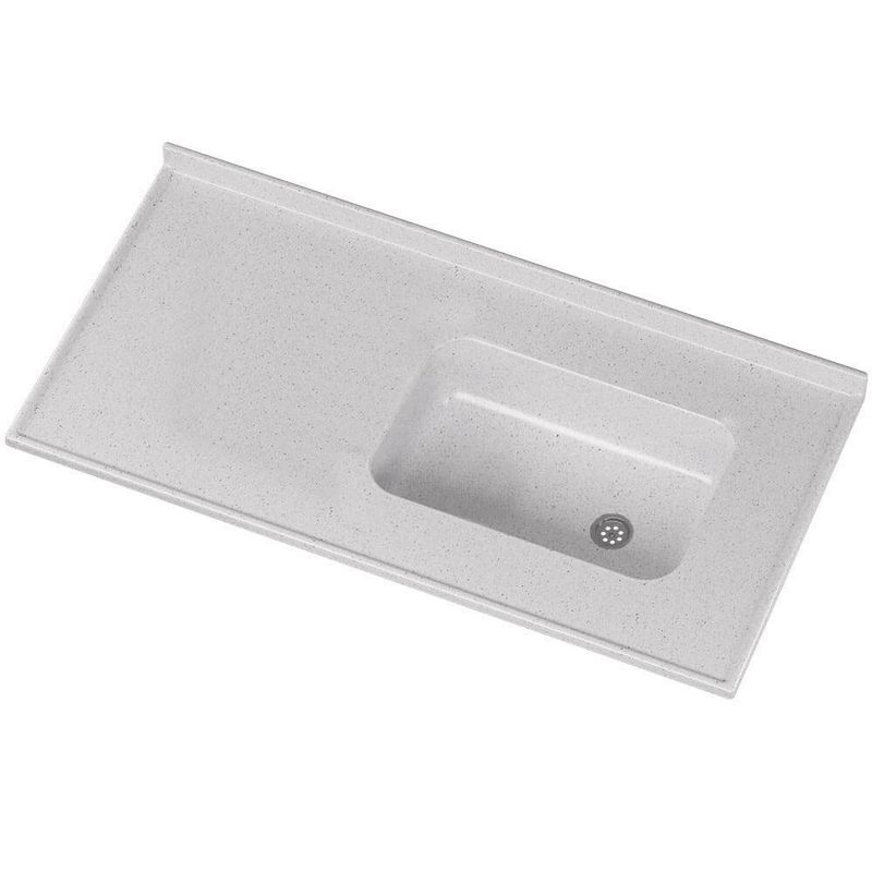 Mesada de Cocina 1,20x0,60cm con zocalo Der. Gris Claro -Bacha 0,52x0,32x0,15mt - Mesada de Cocina de Mármol Sintético, con zocalo, bacha integral. La mesada y la bacha forman una sola pieza, sin juntas ni uniones. El fino borde antiderrame que se encuentra alrededor de la mesada impide que el agua derrame, ayudando a mantener un ambiente más limpio.