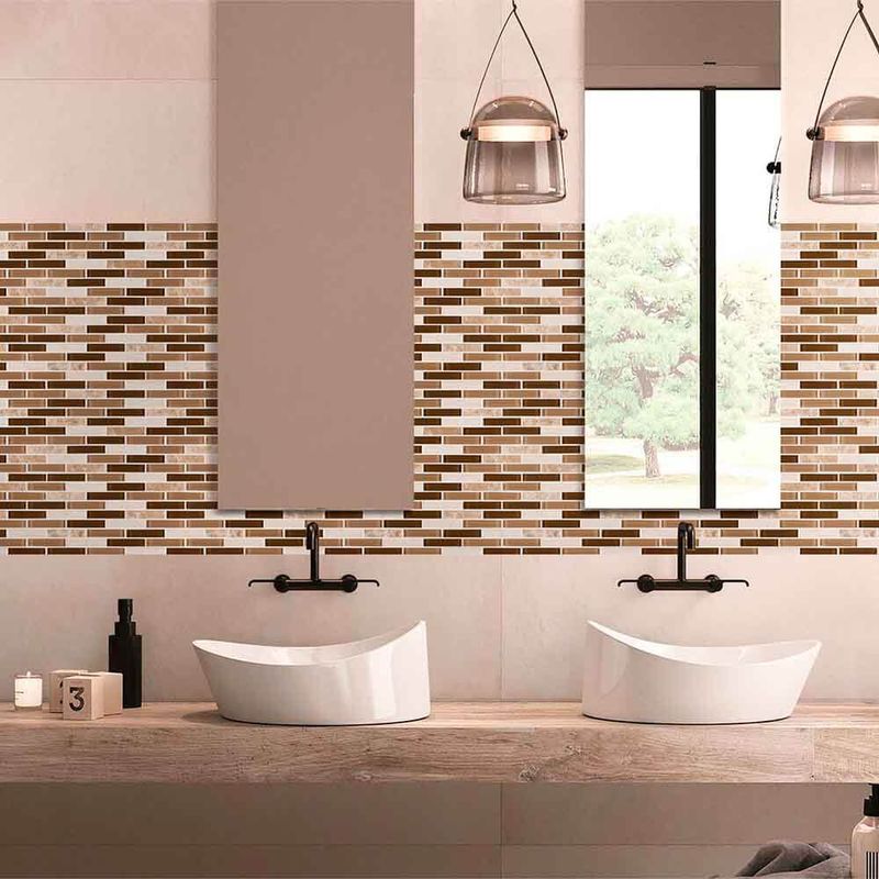 La malla Murano 4 Strips Misiones Deco (Q4006) es un revestimiento de alta gama que combina lujo y modernidad con un fromato de 30x30 cm. Se destaca por su exclusiva mezcla de materiales, integrando texturas de vidrio, piedra natural y detalles metálicos en un formato de tiras escalonadas que aportan profundidad y un brillo dinámico a cualquier pared.