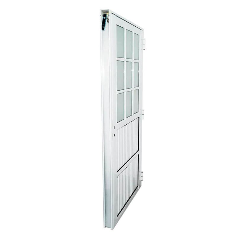 Puerta de aluminio Herfasa Tipo 1/2 Vidrio color Blanco, con tablero acanalado en 25 mm giro izquierdo, económicas, resistentes a los rayos UV y de fácil mantenimiento. Ideales para viviendas y proyectos en exterior e interior. No incluye Picaporte Incluye Cerradura y llaves