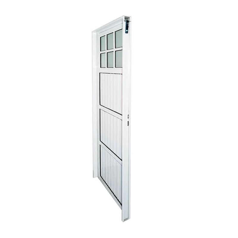 Puerta de aluminio Herfasa Tipo 1/4 de vidrio color Blanco, con tablero acanalado en 25 mm giro izquierdo, económicas, resistentes a los rayos UV y de fácil mantenimiento. Ideales para viviendas y proyectos en exterior e interior. No incluye Picaporte Incluye Cerradura y llaves