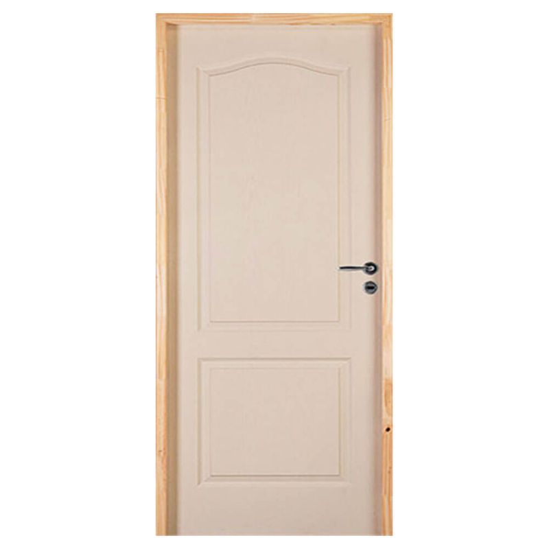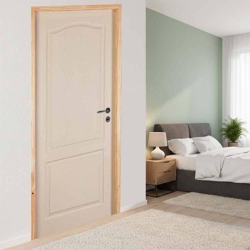 La Puerta Moldeada Camden Natural Oblak 2T PCI MM 80 Izquierda es una puerta placa de interior de 80 cm de ancho de paso, con apertura a la izquierda, compuesta por una hoja de paneles de HDF (fibra de alta densidad) premoldeados que imitan el veteado de madera, un relleno tipo "nido de abeja" y un bastidor de madera maciza, con un acabado en pintura base primer blanca lista para pintar. Su diseño clásico presenta dos tableros moldeados (2T) y cuenta con un marco de madera de finger joint estabilizado, equipada con bisagras y cerradura de simple contacto (PCI).