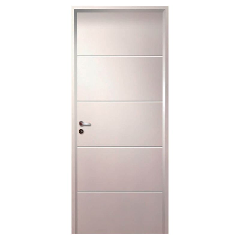 Puerta Gromanti Americana línea 2006 es una puerta placa de interior de 70 Cm de Ancho con giro derecho, construida con bastidor de pino y núcleo interno tipo nido de abejas. Está recubierta con doble tapa de MDF de 5.5 mm, ideal para pintar, y cuenta con líneas horizontales que le dan un diseño clásico. Posee marco de Madera y una cerradura común con bisagras.