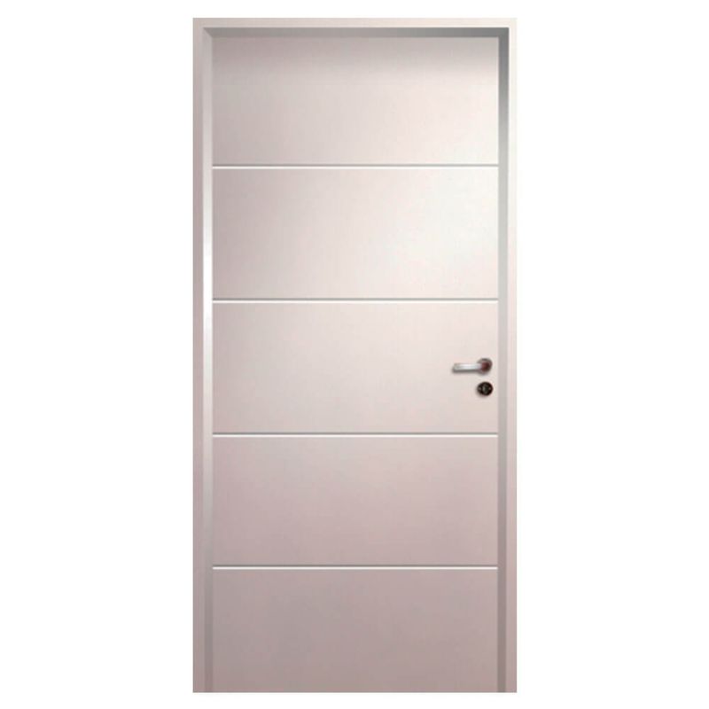 Puerta Gromanti Americana línea 2006 es una puerta placa de interior de 80 Cm de Ancho con giro izquierdo, construida con bastidor de pino y núcleo interno tipo nido de abejas. Está recubierta con doble tapa de MDF de 5.5 mm, ideal para pintar, y cuenta con líneas horizontales que le dan un diseño clásico. Posee marco de Madera y una cerradura común con bisagras.