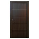 Puerta Placa Tekstura Modelo H Wengue de 90 cm de ancho con giro derecho, Novedosa tonalidad y textura de melamina, Todos los cantos de la hoja están protegidos, posee contramarco regulable estándar, Burlete perimetral, mejora la aislación. No Incluye Picaporte.