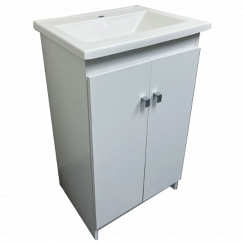 Vanitory Blanco con Mesada Superfil de 52x42 Cm, con un diseño que transforma tu baño, confeccionado en melamina (MDF) y Mesada de Marmol Sintetico (MS) de 1 Agujero, de formato Cuadrada y posee 2 puertas con manijas. Incluye grifería Lavatorio.